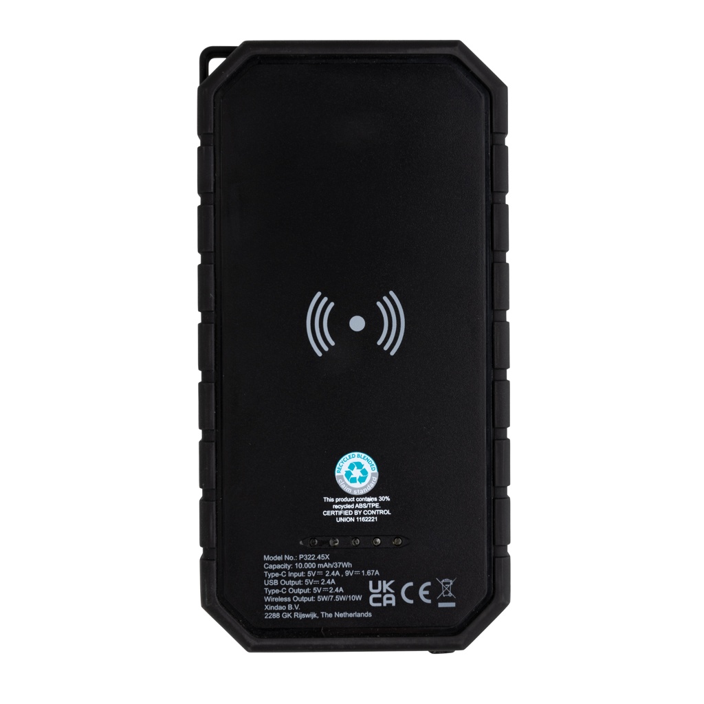 10.000 mAh Solar-Powerbank mit 10W Wireless aus RCS Plastik, Schwarz
