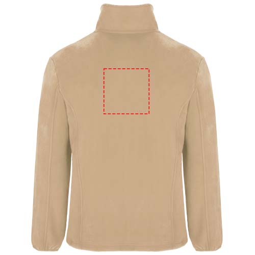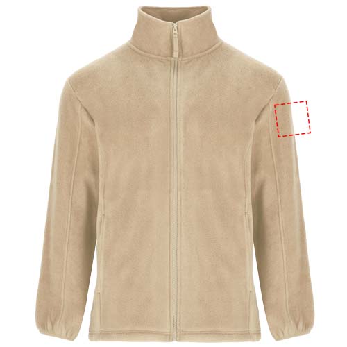 Fleecejacke mit gefüttertem Stehkragen und entsprechend verstärkten und verdeckten Nähten. Eingespritzter Reißverschluss mit passendem Zipper aus Stoff. Seitentaschen. Ärmelbündchen mit Gummizug. Unterer Saum mit seitlichem Reißverschluss. Herausnehmbares Etikett. Das Modell ist 185 cm groß und trägt Größe M.