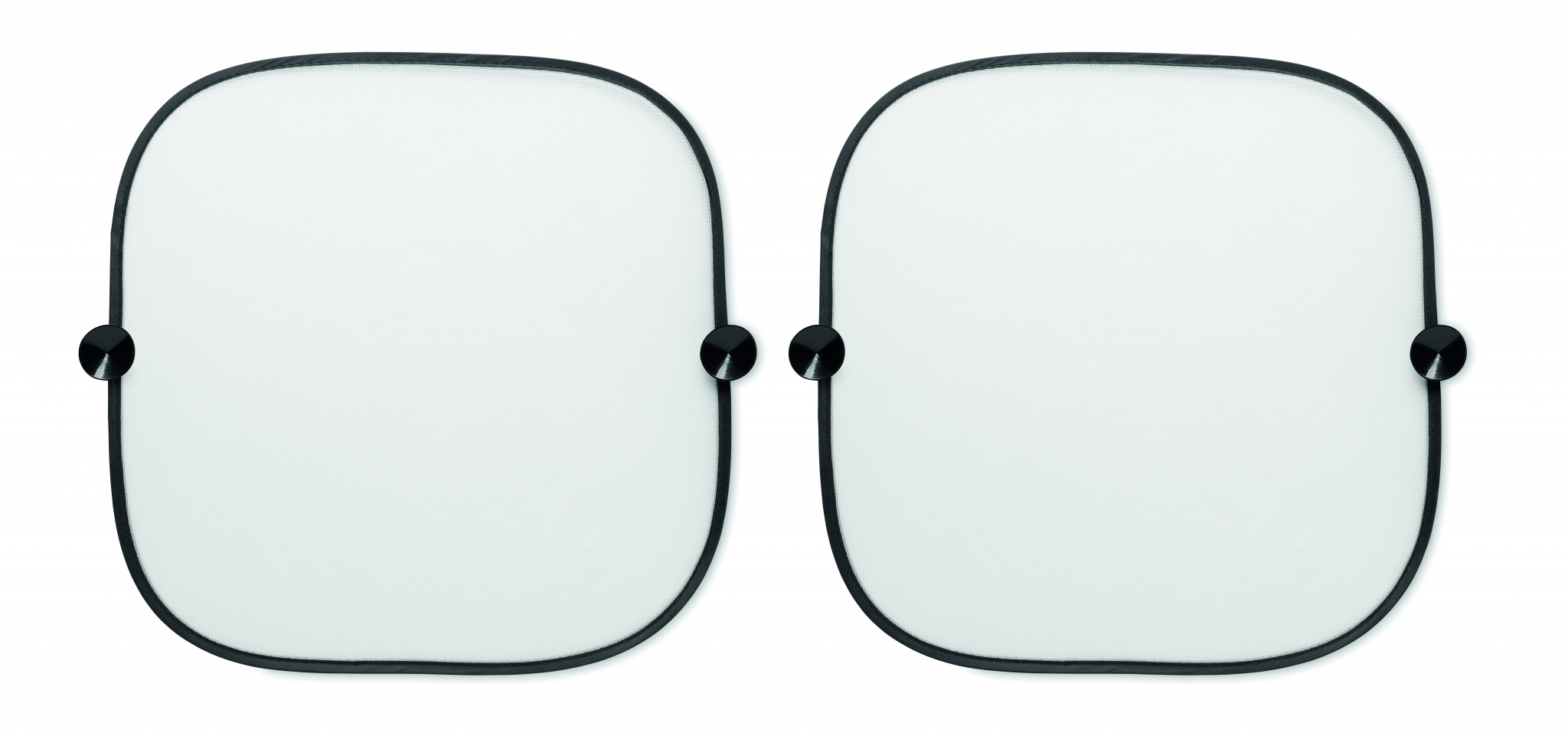 2-teiliger Sonnenschutz fürs Autofenster. Befestigung mit 2 Saugnäpfen. Polyester.