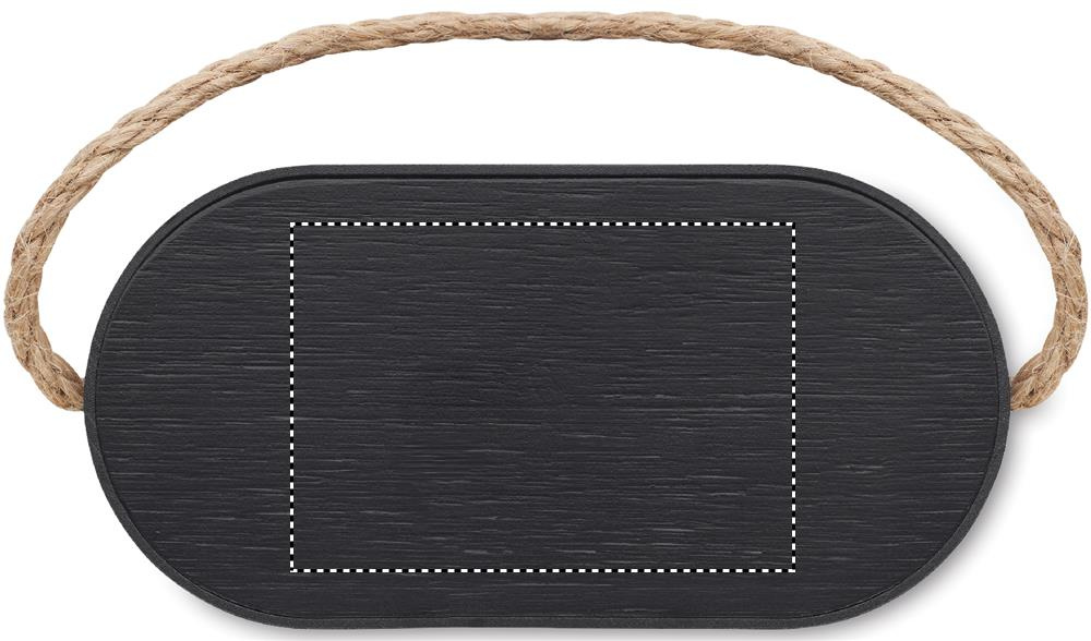 5.3 wireless Lautsprecher mit 15W kabelloser Ladestation. ABS mit RPET-Polyester-Gewebe und schwarz beschichtetem Bambus. Jutegriff. Eingebauter Li-Ion-Akku: 1200 mAh. Ausgangsdaten: 5W, 4 Ohm und 5V. Spielzeit ca. 4 Stunden.