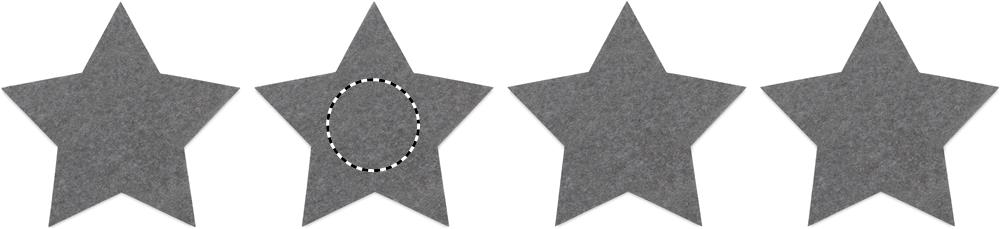 Set mit 4 Untersetzern aus RPET-Filz in Form eines Sterns. Lieferung in einer Schachtel aus Kraftpapier.