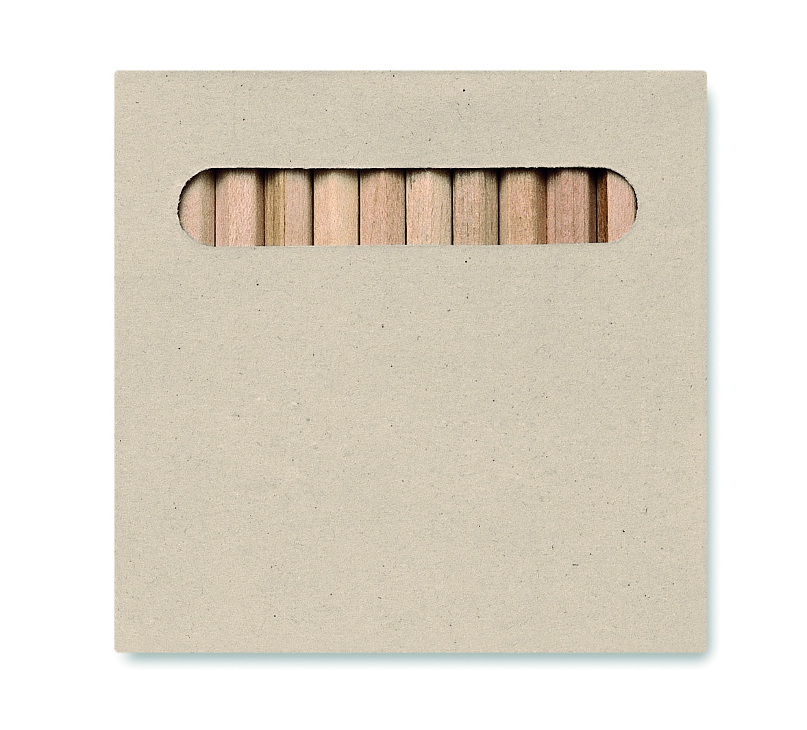 Set of 12 coloured pencils in natural carton box.