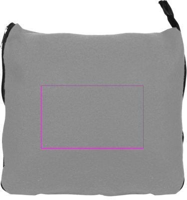 Fleece blanket (grammage 170 g/m², size: 180 x 120cm) with zipper, which by folding then turns into a pillow. We embroider your logo on the blanket.