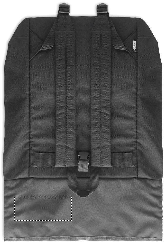 15 inch rolltop laptop backpack in 300D RPET polyester. Large zippered front pocket, hidden side pocket with small carabineer loop inside. The carabiner is not for climbing (non professional use).