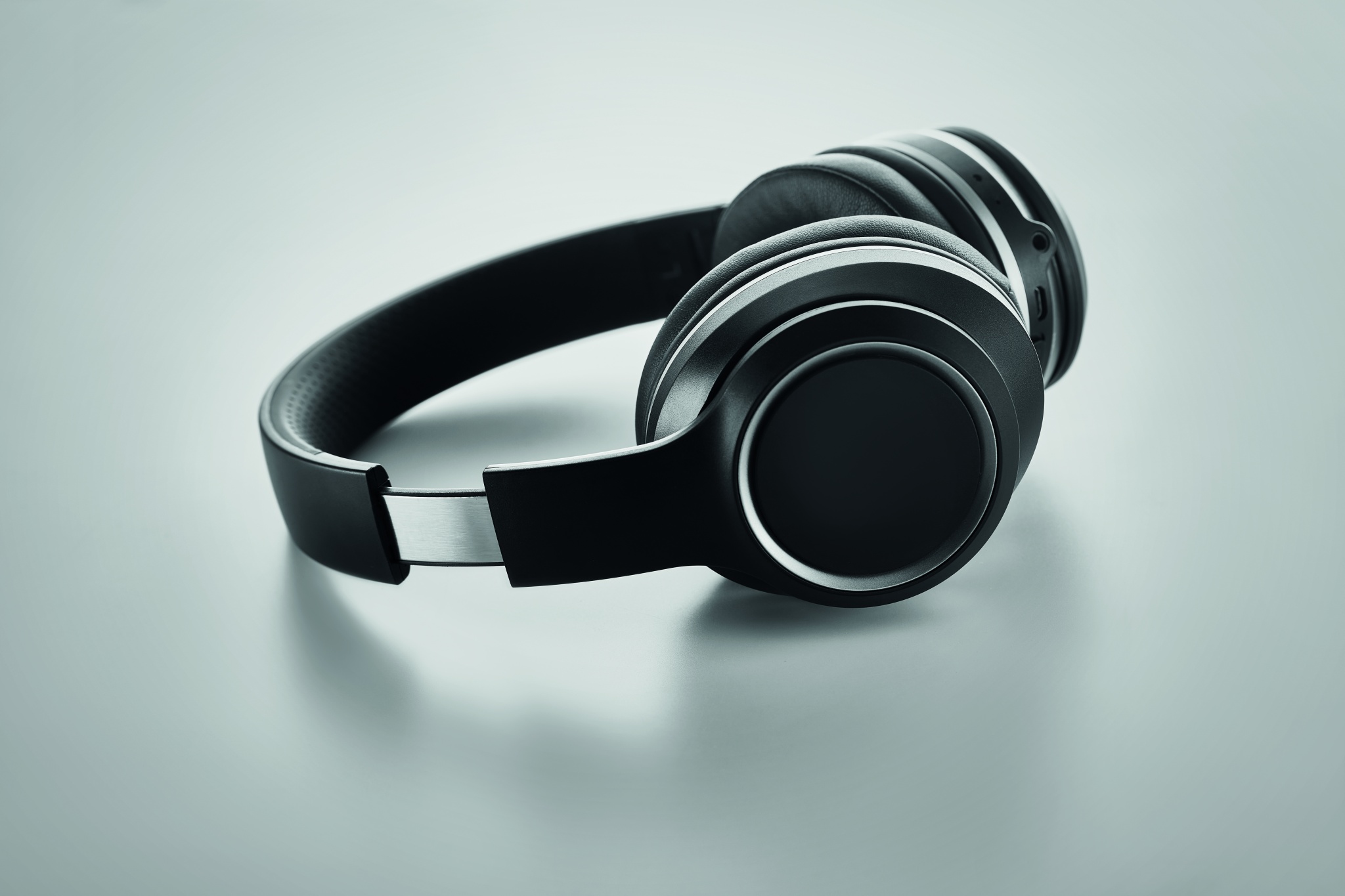 Active noise cancelling (ANC) foldable wireless 5.0 headphone in ABS. Rechargeable Li-ion battery 500 mAh. Hands free function and microphone built in. Playing time approx. 17 hours. Includes micro USB charging cable. All presented in PU pouch. Operating range: 10 m.