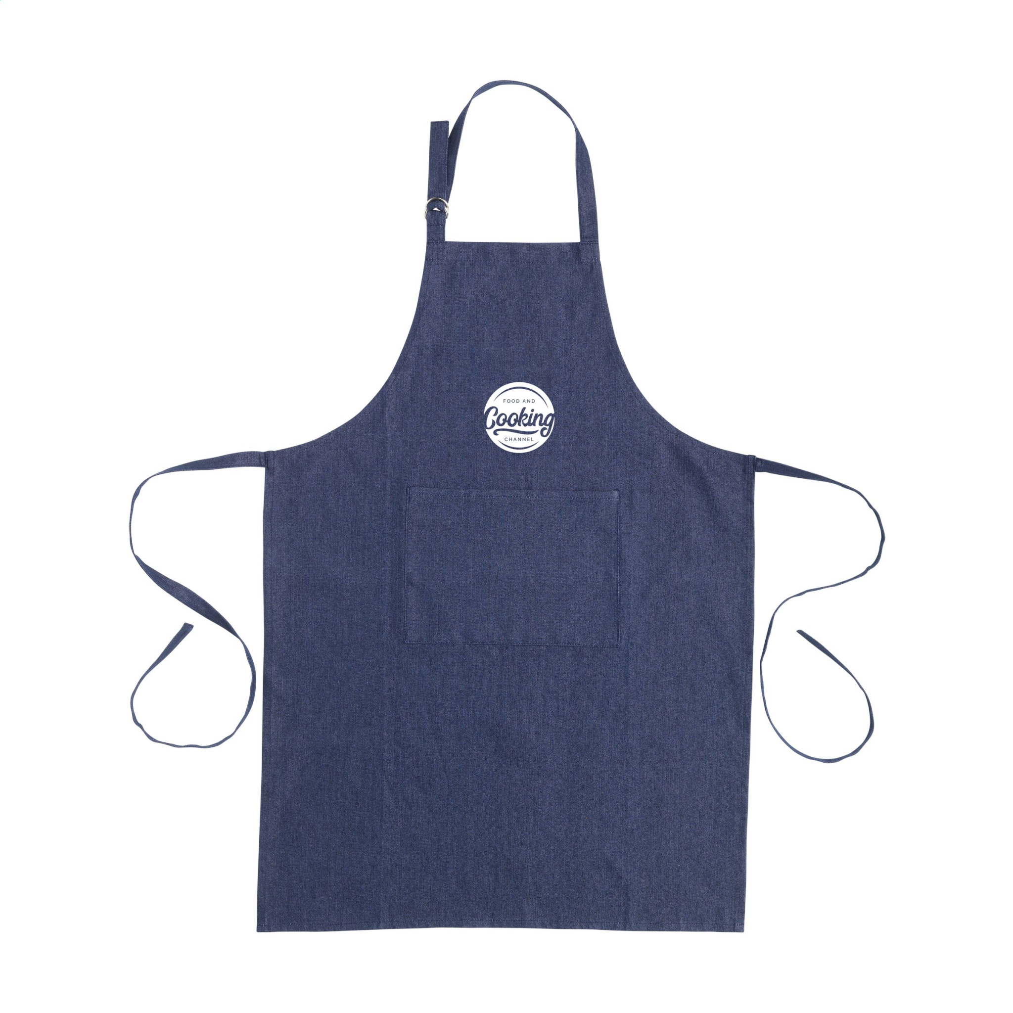 WoW! Apron made of 100% recycled, blended denim (220 g/m²). With a patch pocket. The neckband can be adjusted with a metal clasp. One size fits all. GRS-certified. Total recycled material: 100%. If you choose this product, you choose recycled cotton. As a result, the colour may vary per product.
