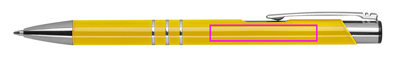 Fully lacquered metal ballpen with 3 decorative rings and blue-writing refill with large capacity. Your logo will be engraved to the right of the clip.