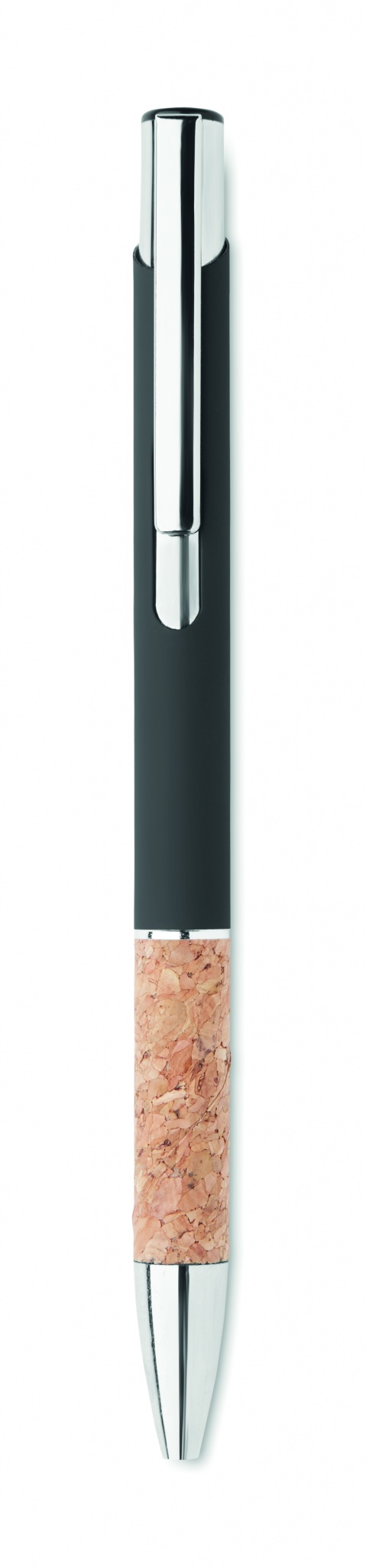 Ballpoint pen made of aluminum with a cork grip, Black