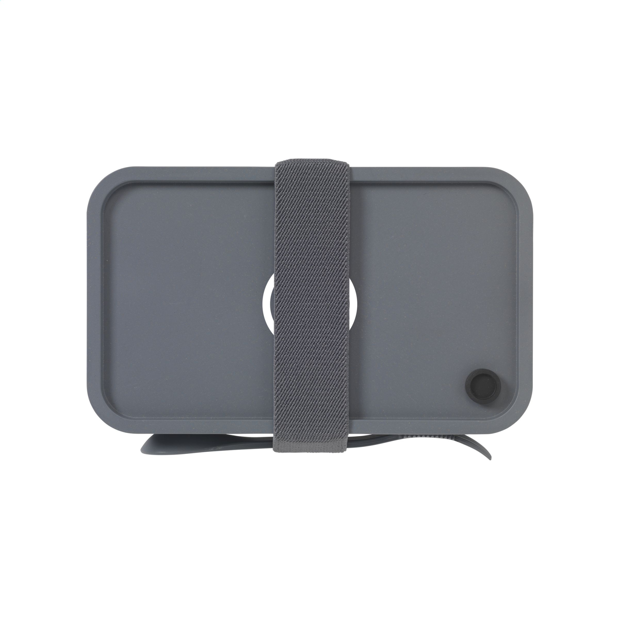 Lunch box made from PP plastic. The close-fitting lid has a silicone sealing ring with ventilation opening and a silicone cap. An elastic strap ensures that the lid stays in place on the go. This product includes a 3-in-1 fork, spoon and knife and a removable divider. This lunch box can be put in to the refrigerator making it the perfect airtight container for fresh food. Durable and environmentally friendly. Suitable for use in the microwave and freezer.
