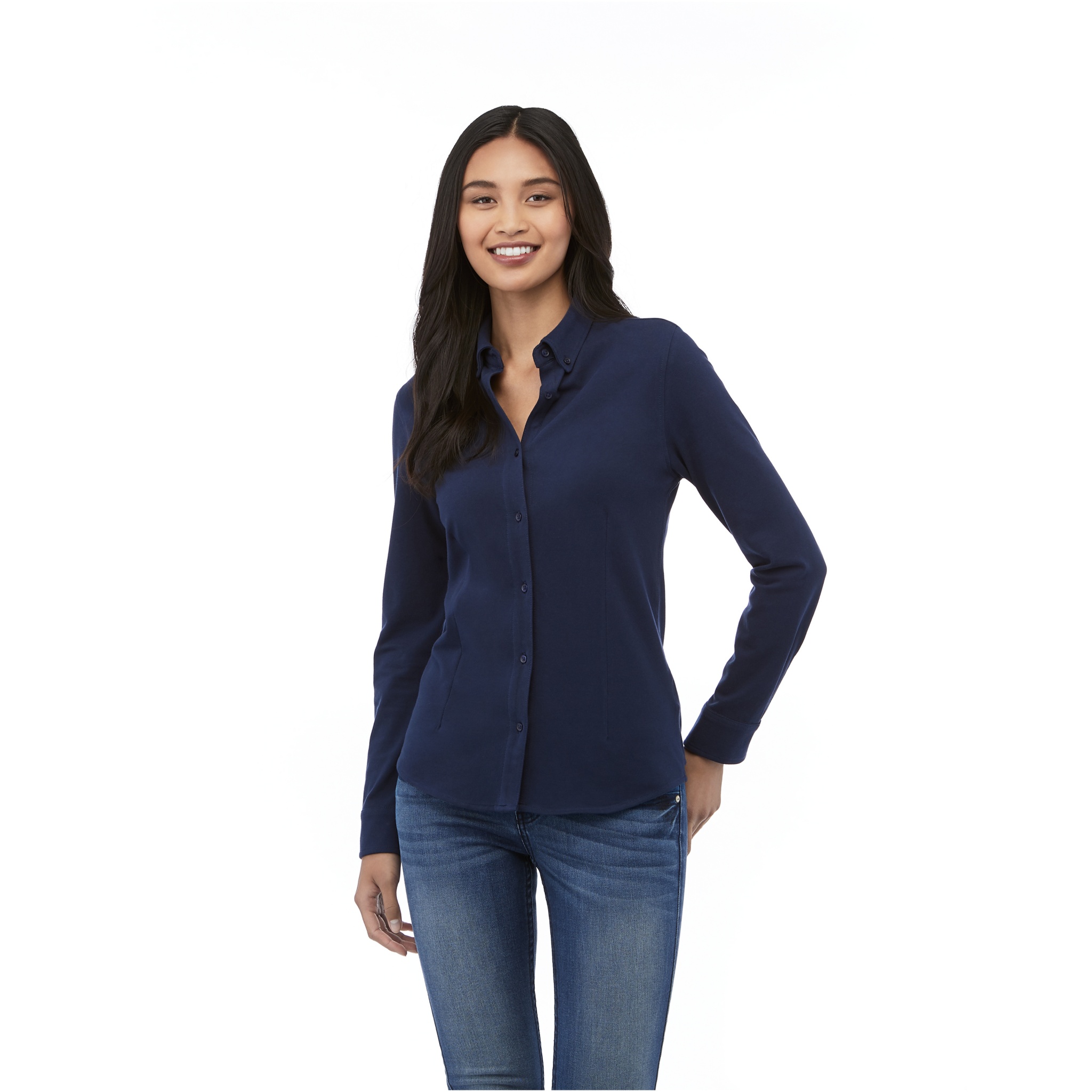 Bigelow long sleeve women's pique shirt, Navy
