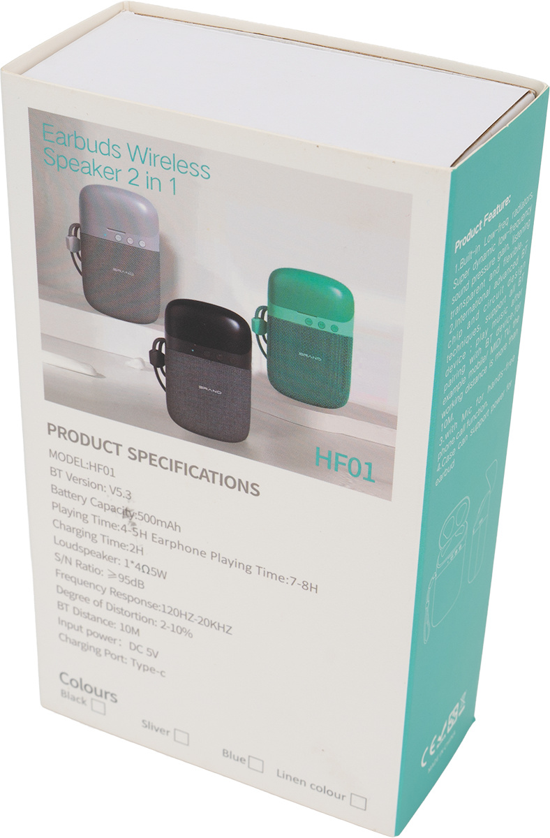 Bluetooth Speaker HF01 with Built-in Earbuds 2 in 1, multi-colour