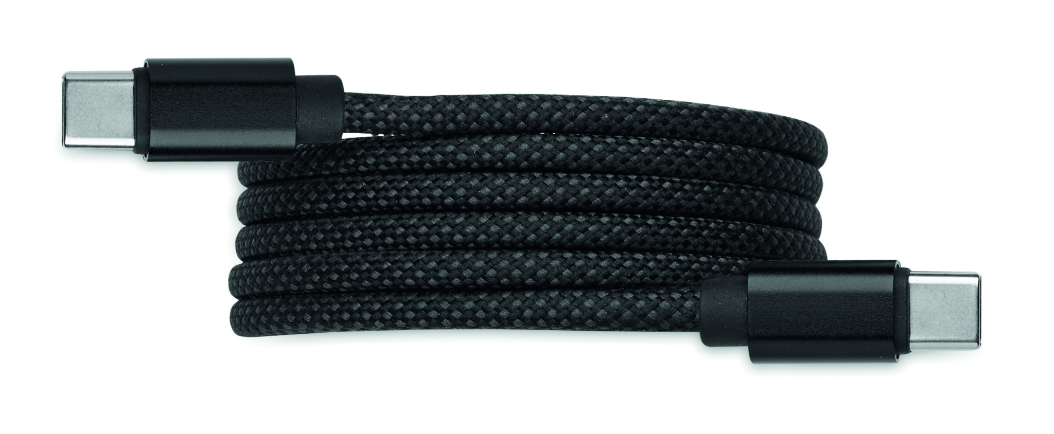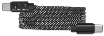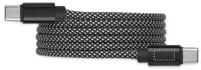Tangle-free braided magnetic cable made from GRS-certified RPET and aluminium. Type C to C, 60W fast charging, 1 m length. Always stacks neatly and never ties in a knot.