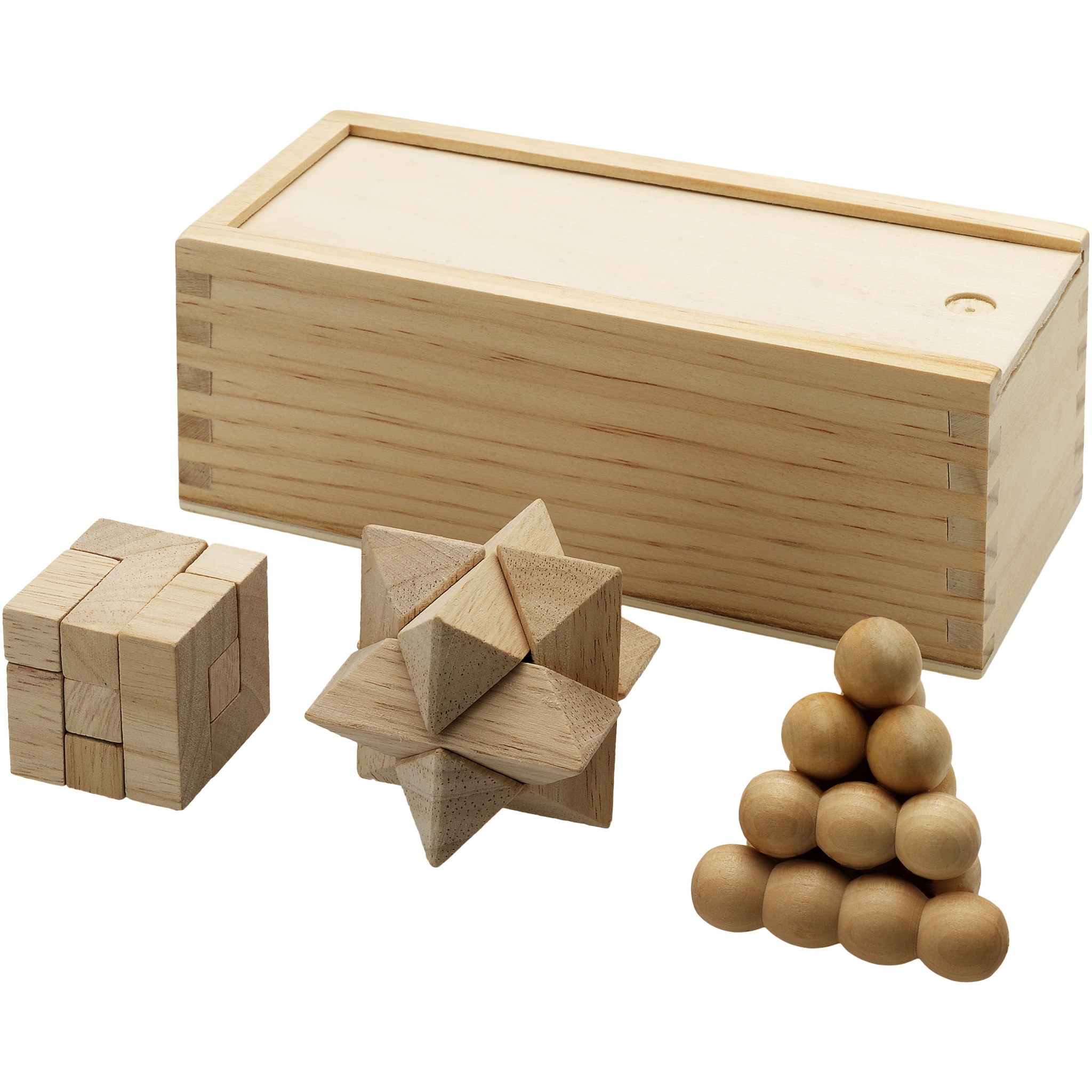 Brainiac 3-piece wooden brain teaser set, Natural