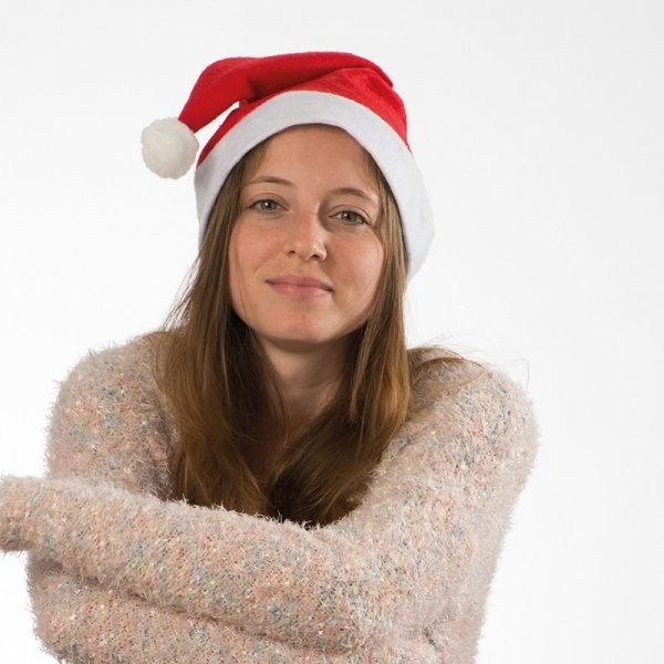 Christmas hat made of felt. Your advertising message will be screen printed on the white edge of the cap.