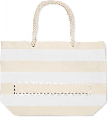 Striped beach or shopping bag in cotton with cord handle. 220 gr/m².
