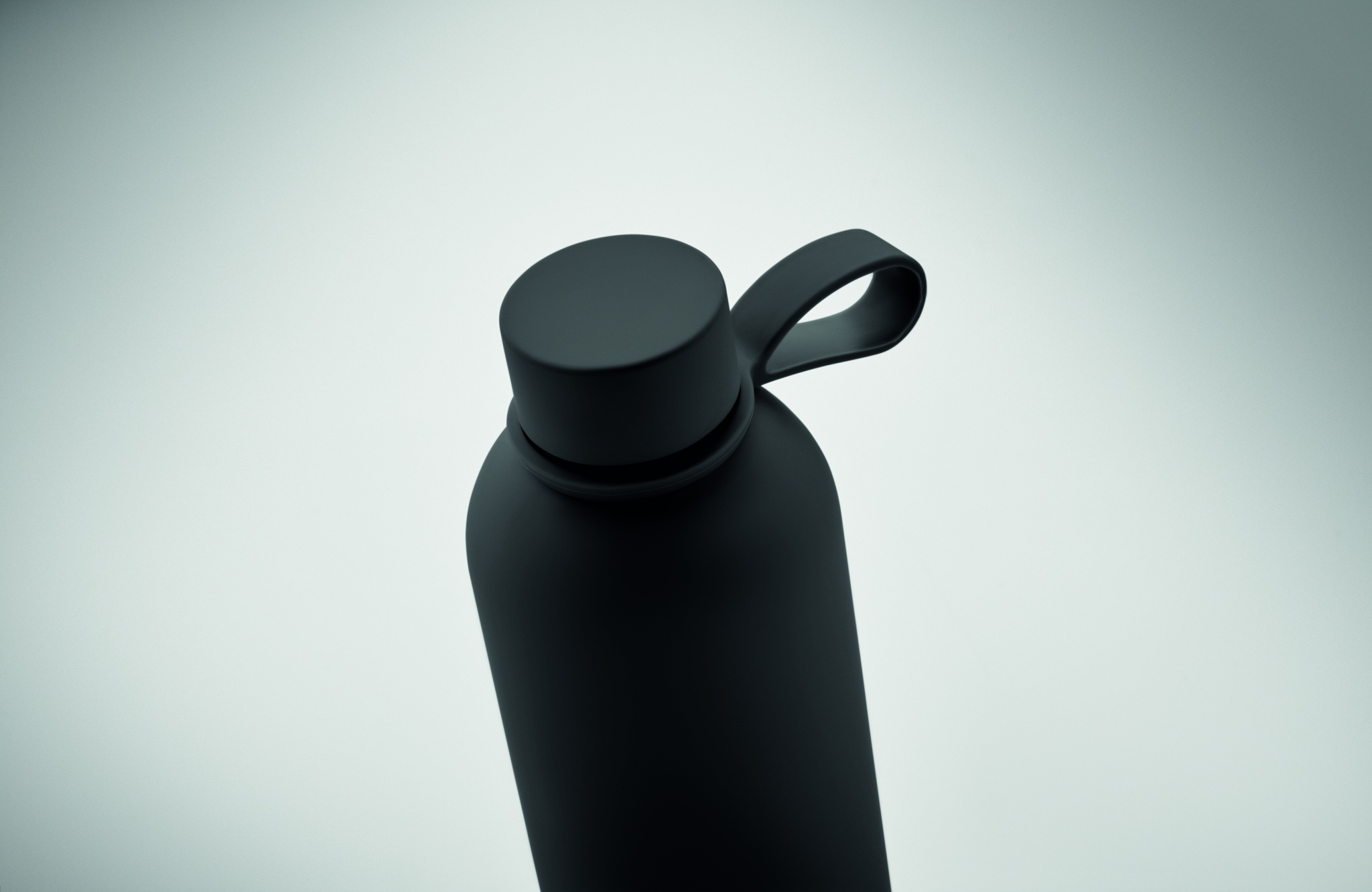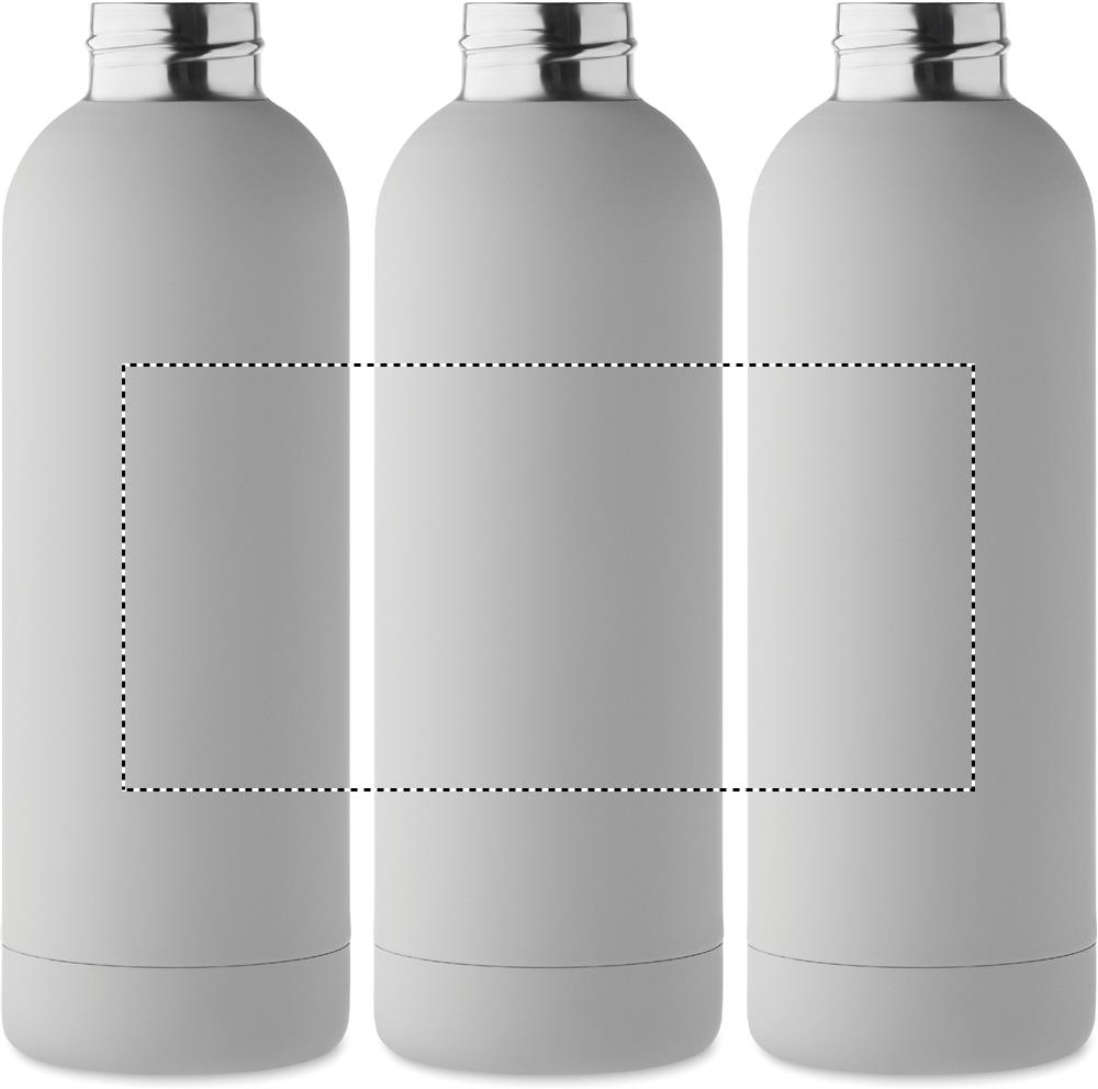 Double wall vacuum insulating bottle in recycled stainless steel (90% recycled stainless steel and 10% stainless steel) with rubber finish and silicone handle. Capacity: 500 ml.