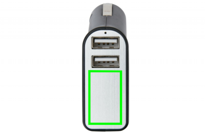 Dual USB port car charger that can be used to charge two mobile devices at the same time. This charger also includes a belt cutter and a window breaker in case of an emergency. Output: 5V/2.1A.