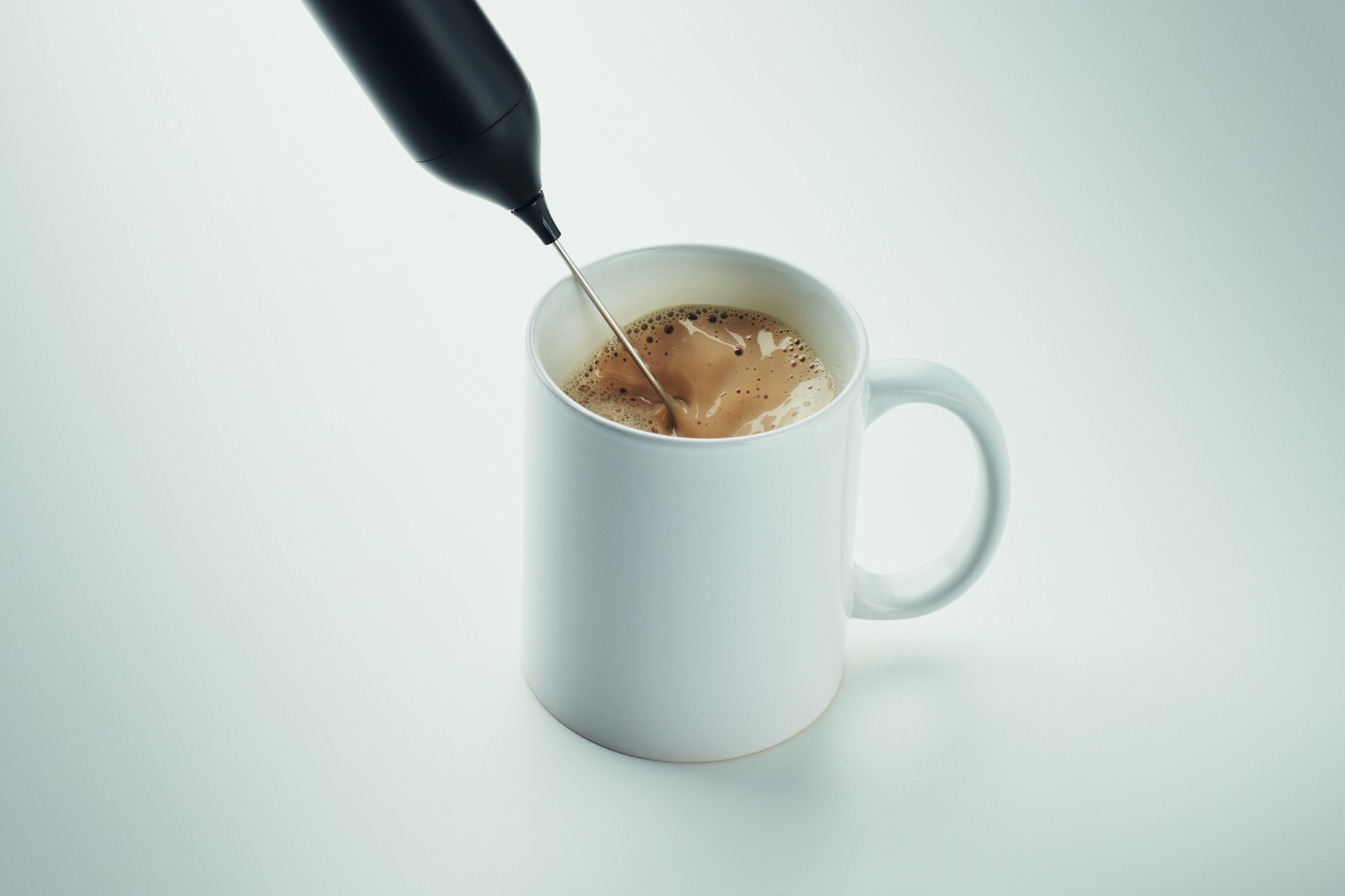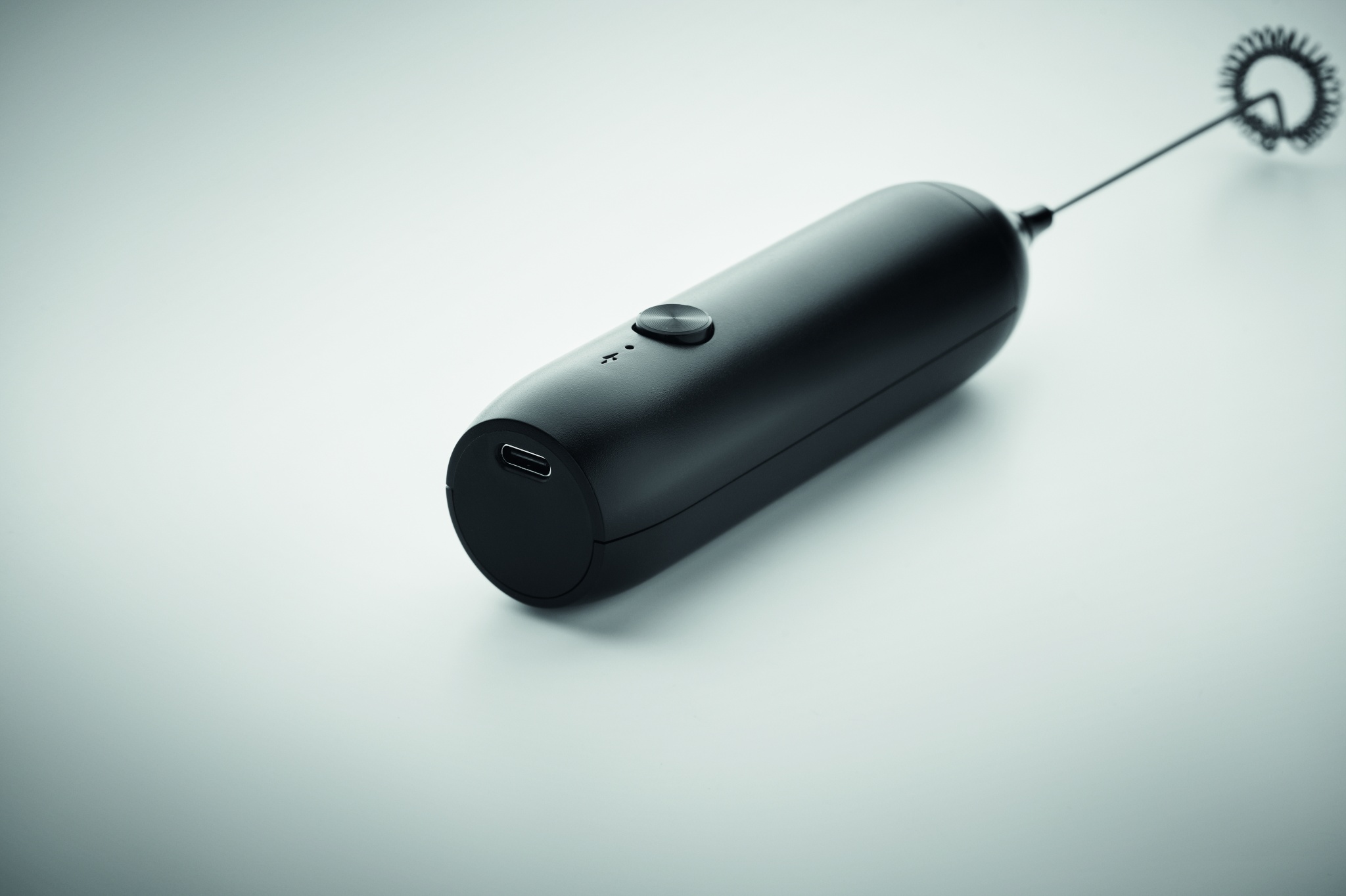 Handheld electric milk frother in ABS with matt finish. Built-in battery capacity 500 mAh. USB Type-C rechargeable (cable included). Speed: 10000 rpm.