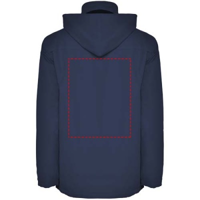 Padded waterproof jacket. Central molded zipper with matching flap. High neck with foldable hood. Side pockets with zip and flap. Adjustable cuffs with straps. Two inner pockets with hook and loop fastening. Inner decoration access zipper. Waterproof. Wind-proof. The models are 120/122 cm and are wearing size 6.