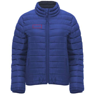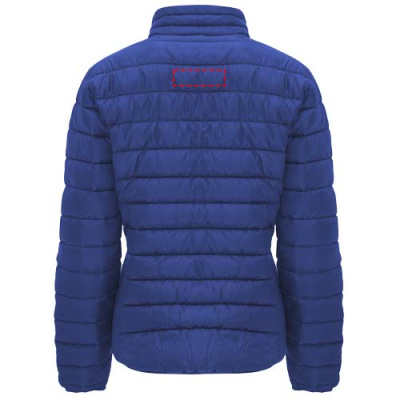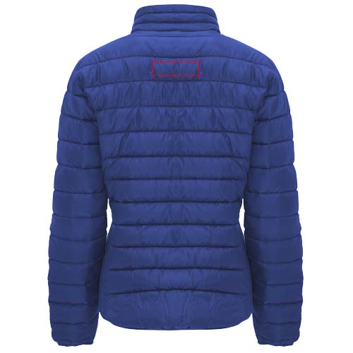 Women's quilted jacket with feather touch padding. Inverted zippers with matching chin protector and puller. Two front pockets with zippers. Matching elastic edging in collar, cuffs and hem. Contrasting inner lining. Includes stow carry bag. Lightweight and foldable garment. Fitted cut. Removable label. Water resistant. Wind-proof. The model is 179 cm and is wearing size S.