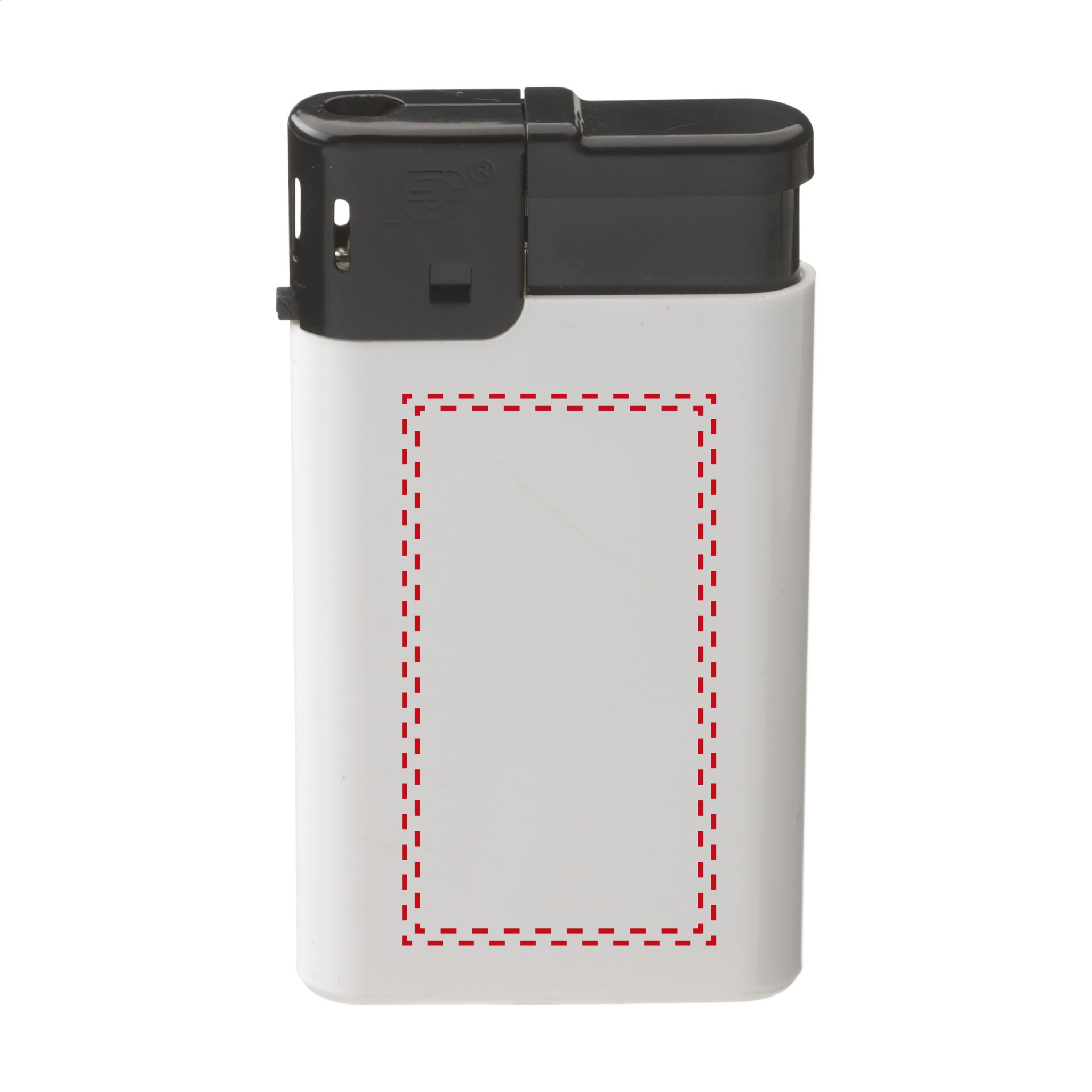 Electronic, refillable lighter of the brand Flameclub® with an adjustable flame. Outstanding model with a large print area for a full colour print. Equipped with child lock. NEN-certified: EN13869. TÜV-certified and ISO-certified: ISO9994.