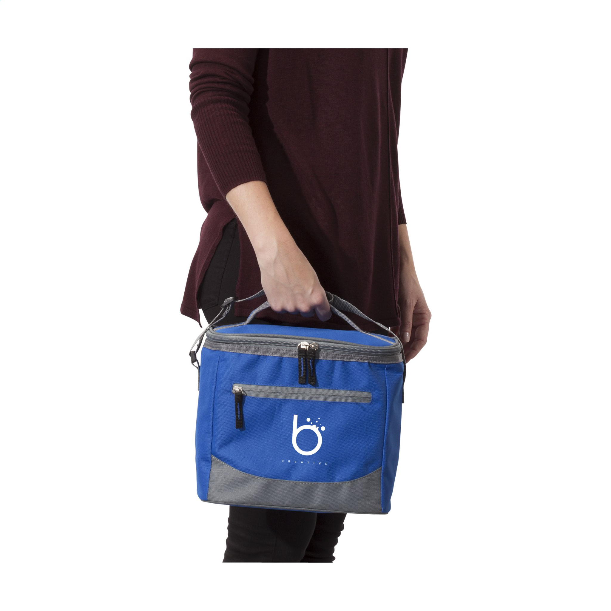 Handy cooler bag. Made from 600D polyester. With large cooler compartment, front pocket with zipper, handle and adjustable shoulder strap. Suitable for 12 cans.