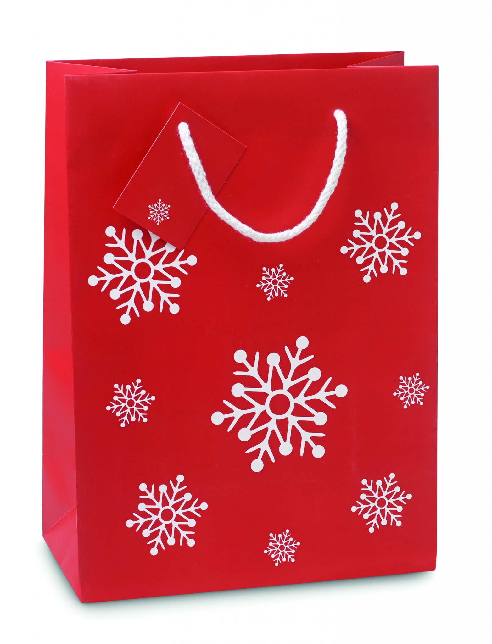 Elegant gift paper bag with snowflakes pattern. Gift tag included. Medium size.