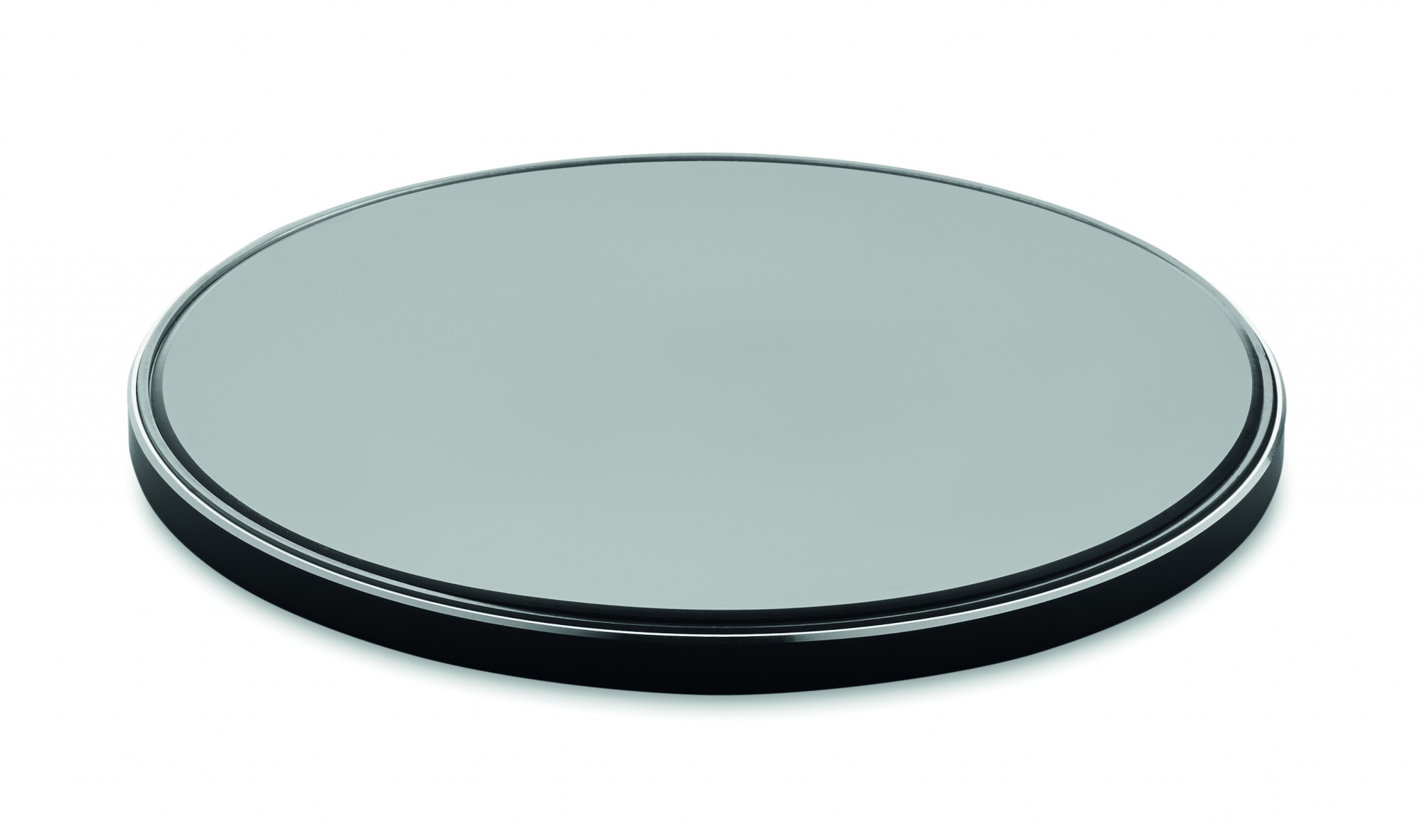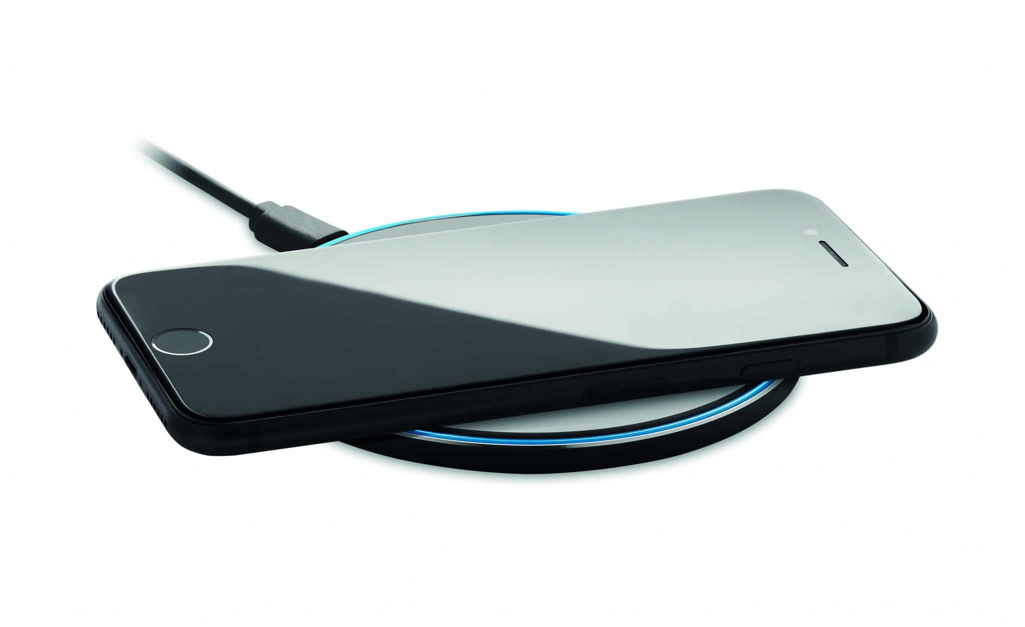 Aluminium Wireless charger 10W with glass on top. Connect device to your computer, lay down smartphone on it and let it charge. Blue light when charging. Output: DC 9V/1.1A. Compatible latest androids, iPhone® 8, X and newer.