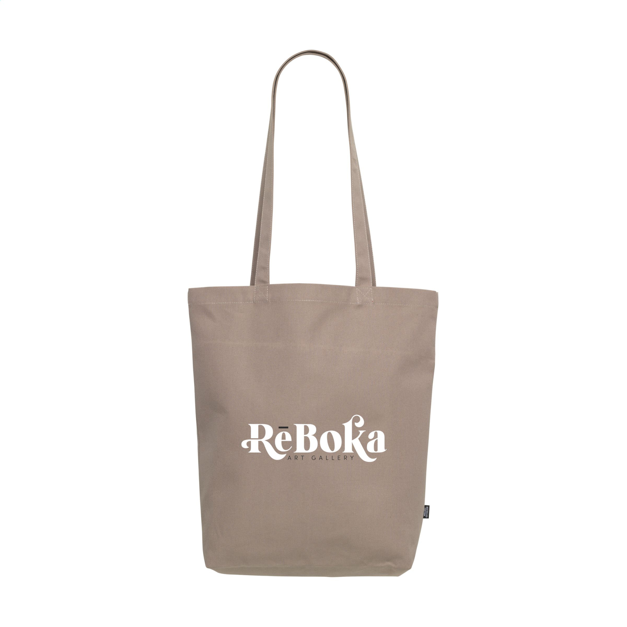 WoW! Shopping bag with long handles. This bag is made from extra heavy quality recycled cotton canvas (260 g/m²). GRS-certified. Total recycled material: 92%. Capacity approx. 15 litres.