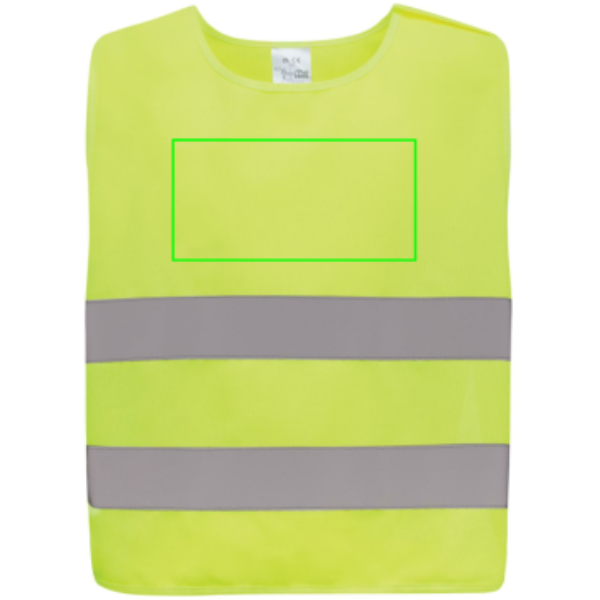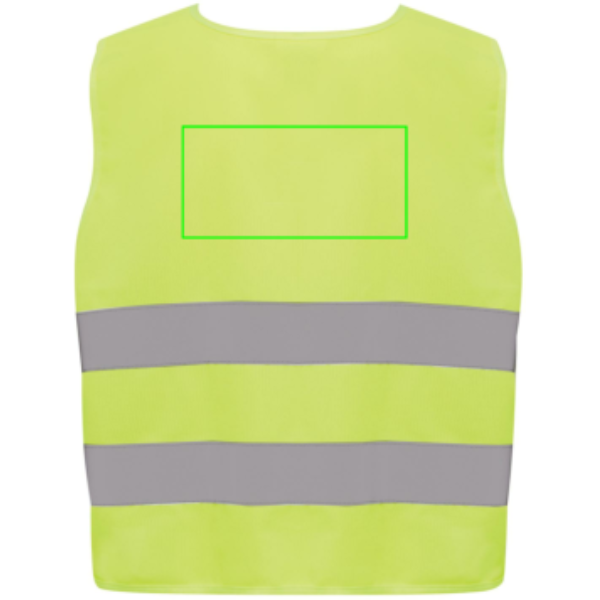 S-sized high-visibility vest designed for children aged 7 to 12, suitable for those with a height ranging from 90 to 155 cm. This vest offers a generous surface area for decoration, both on the front and back. It is equipped with hook and loop closures on the shoulders and at the base, providing additional safety and facilitating effortless vest donning. The opposing elastic bands ensure stretchability, enabling comfortable wear even over bulky coats. This vest has undergone testing and complies with EN 17353:2020 Type AB3. Moreover, it adheres to the PPE guidelines outlined in Regulation (EU) 2016/425 for Personal Protective Equipment Category II. Made with GRS certified recycled PET. Total recycled content: 58% based on total item weight. GRS certification ensures a completely certified supply chain of the recycled materials.