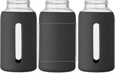 High borosilicate glass bottle with silicone pouch and PP lid with handle. Capacity: 600 ml