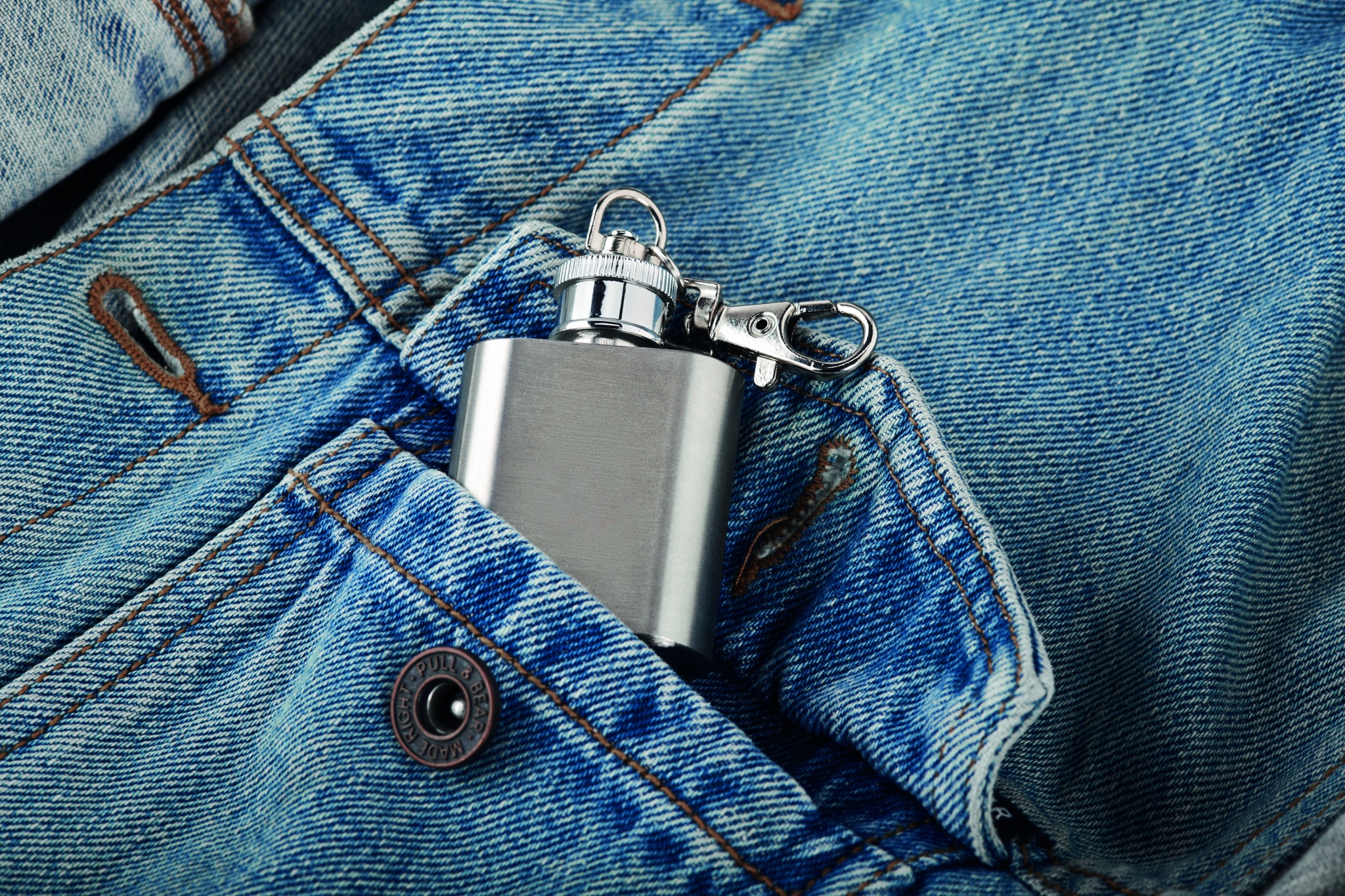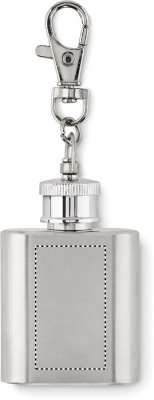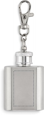Hipflask key ring in stainless steel. Capacity: 28 ml.