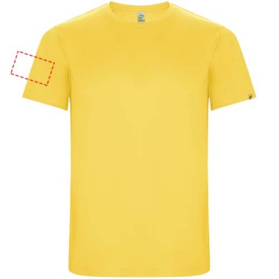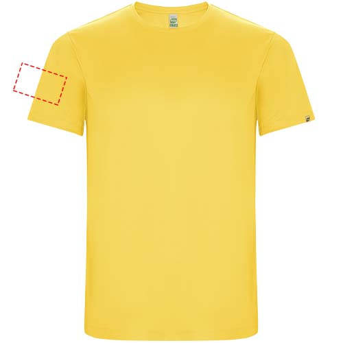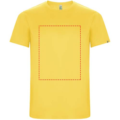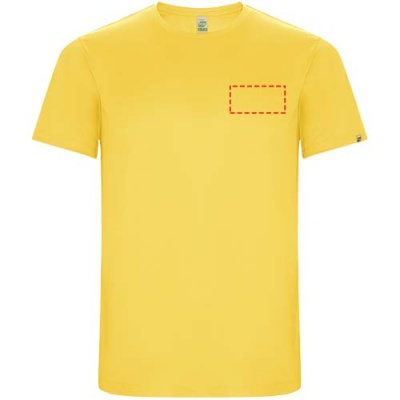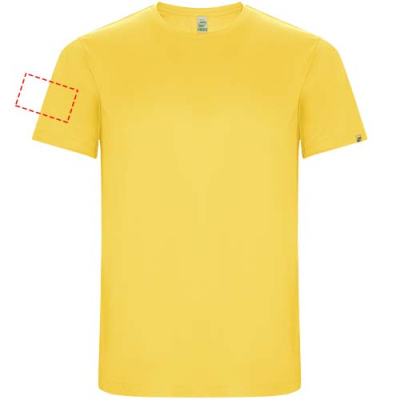 Technical short-sleeve t-shirt in recycled CONTROL-DRY polyester. Crew neck with matching covered seams. ECO logo label on sleeve. Packing in recycled material. Removable ECO label. Packing in recycled material. Technical fabric. The model is 115 cm and is wearing size 5/6.