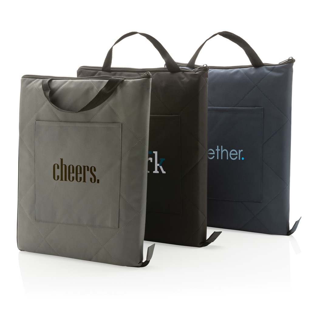 This beautiful quilted picnic blanket features 100% recycled PET materials. The large pocket on the front displays your logo proud and will make carrying your essentials a breeze. The blanket measures 145 x130 cm unfolded. Incorporating the AWARE™ tracer that validates the genuine use of recycled materials. 2% of proceeds of each Impact product sold will be donated to Water.org.