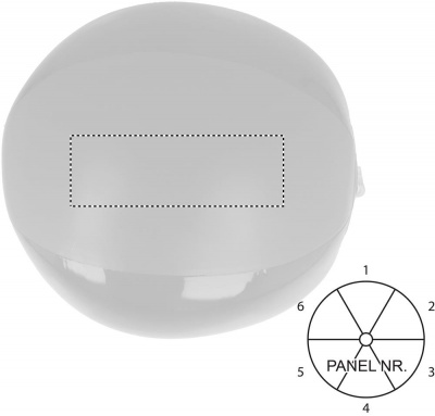 Inflatable beach ball with transparent and solid panels. Inflated: Ø24cm