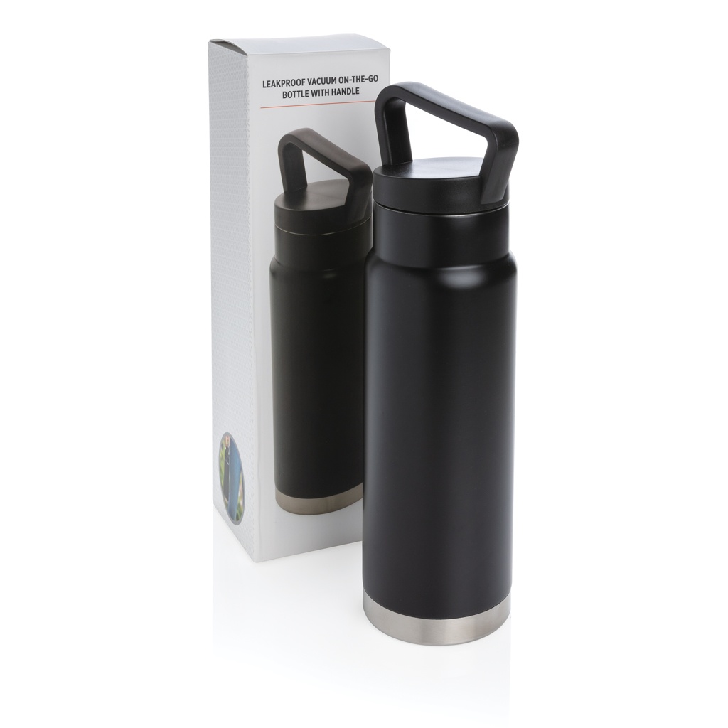 Leakproof vacuum on-the-go bottle with handle, black