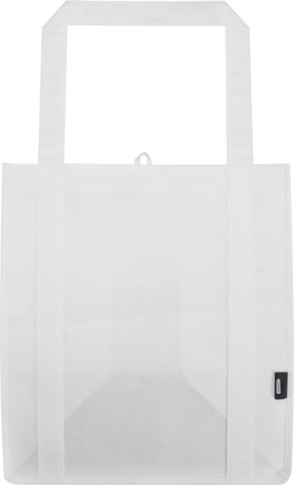 Made from durable and tear resistant non-woven RPET, the Liberty GRS certified recycled tote bag has a supportive bottom board, making it versatile and solid. The tote bag features a large main compartment and 25 cm long handles. Volume capacity: 29 litres. Resistance up to 12 kg weight.