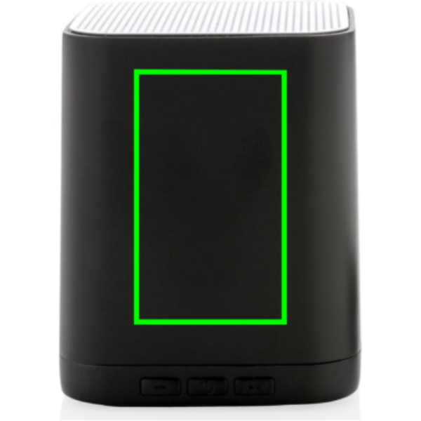 Wireless 3W speaker that can be customised with your logo on the ABS surface. The logo will light up for optimal exposure of your brand. The speaker uses BT 4.2 for smooth connection up to 10 metres. The built-in 400 mAh battery allows you to play music for up to 4 hours on 1 charge and re-charge is done in 1 hour.