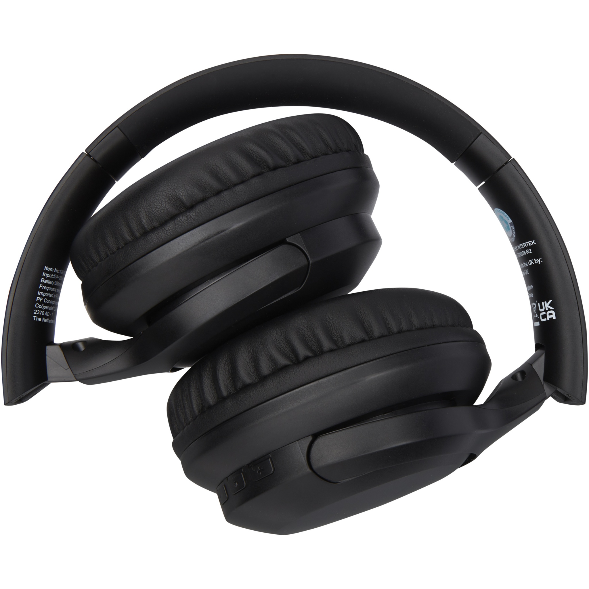 Wireless headphones made of recycled plastic. The headphones includes a microphone to answer phone calls, and the over-ear design of the earcups gives a fantastic sound experience. Bluetooth® 5.2 with a connection range of up to 10 meters. Ergonomic design with spongy earcups for a comfortable fit. The earcups can be folded up and rotated. The built-in 300mAh rechargeable battery provides up to 12 hours playback time at max volume. Delivered in a gift box with an instruction manual (both made of sustainable material).