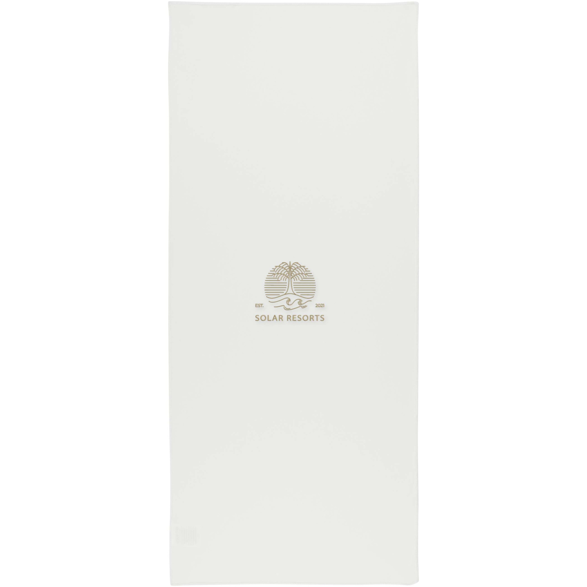 The Lucas RPET sport towel is made from 100% recycled polyester, offering a soft and absorbent surface ideal for training or outdoor activities. With a weight of 140 g/m², it strikes a balance between durability and lightweight comfort. The towel features a practical plastic cord to secure both the towel and pouch, making it easy to carry and store. Delivered with a non-woven pouch (11 x 15.5 cm), that is also made of 100% recycled polyester. Towel size: 30 x 80 cm.