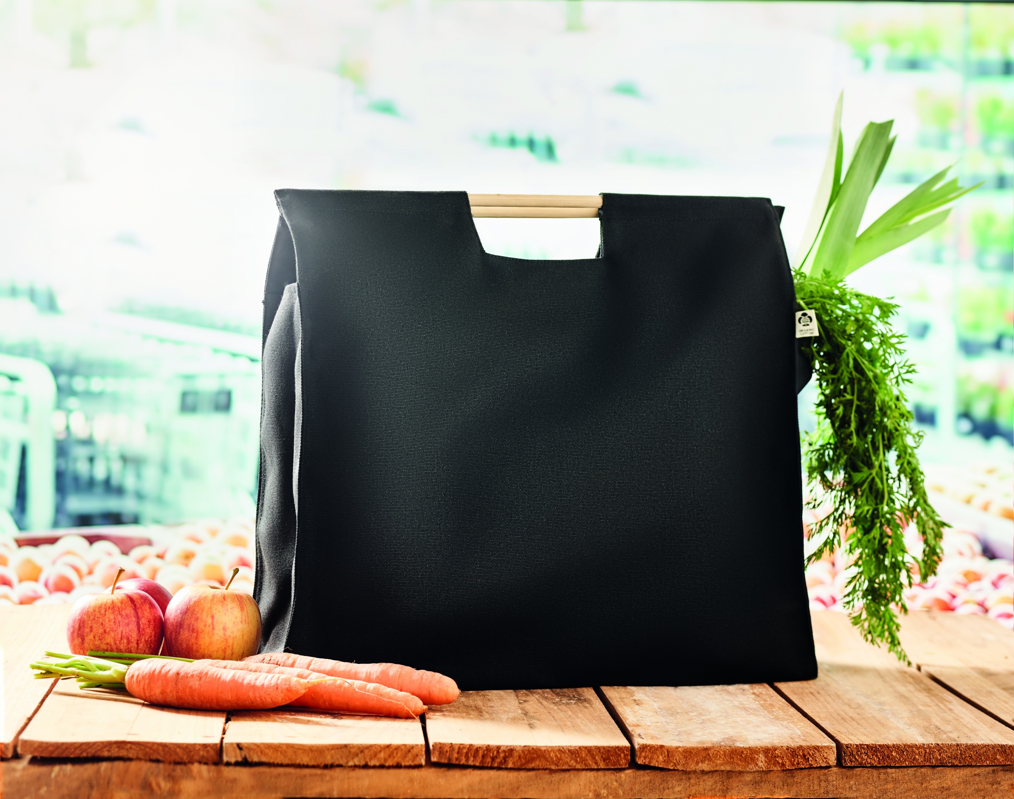 Organic canvas shopping bag with bamboo handles. 360 gr/m².