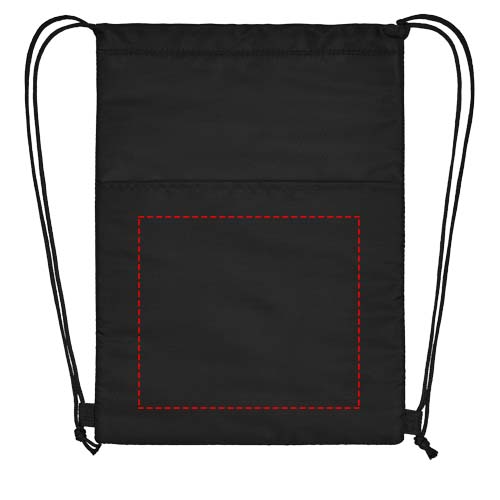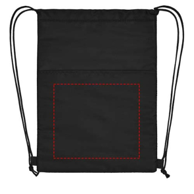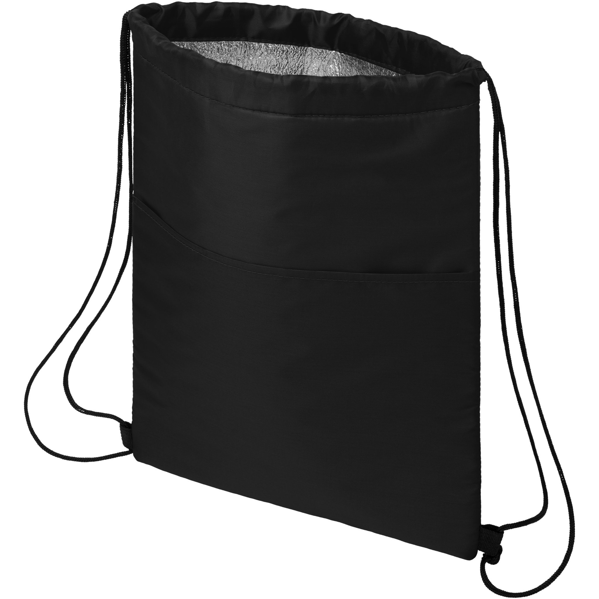 Drawstring cooler bag with string closure in black colour. Features an open front pocket. Fits 12 cans. Resistance up to 5 kg weight.