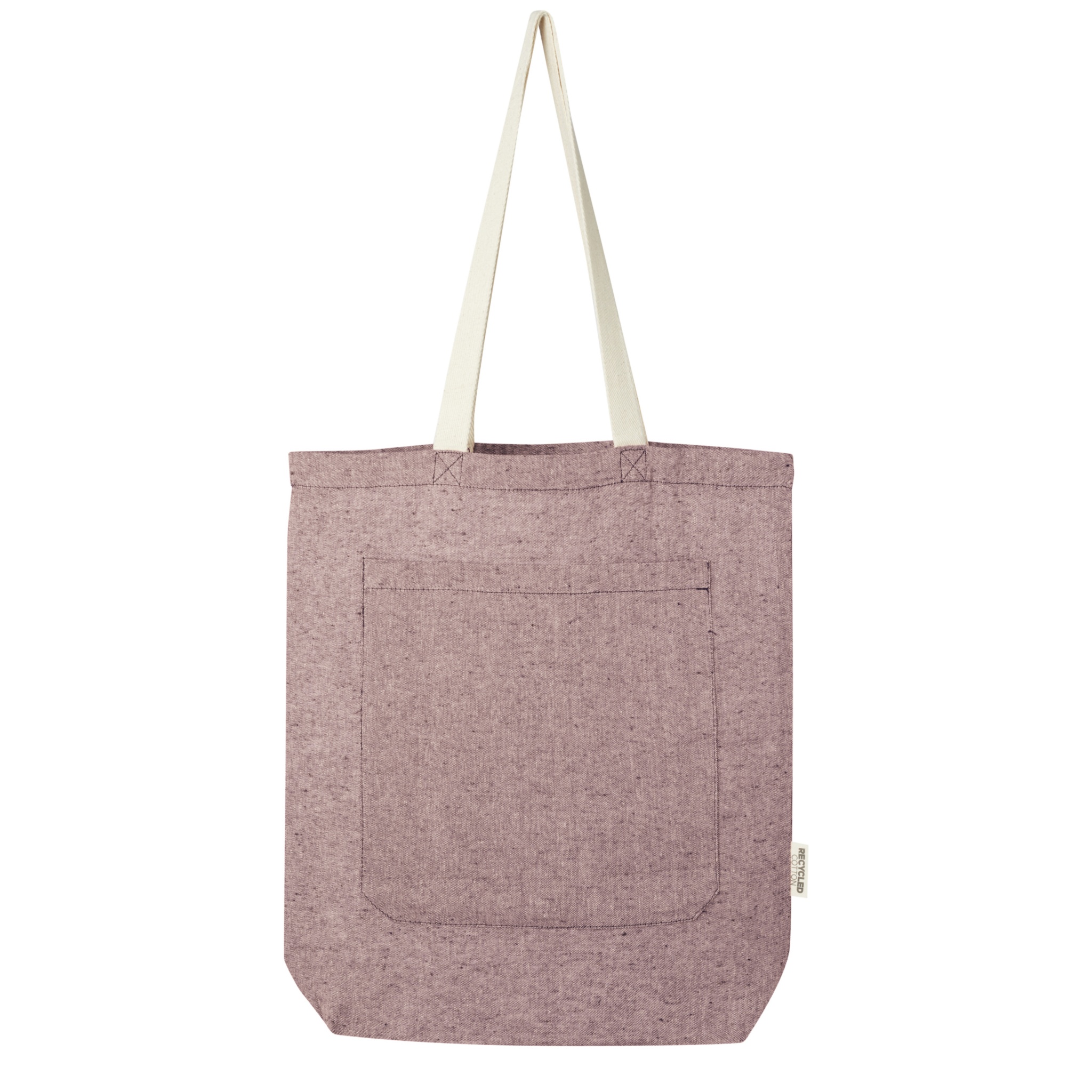 The Pheebs 150 g/m² cotton tote bag is made from eco-friendly, pre-consumer recycled cotton. It features 27 cm durable cotton webbing handles, an open main compartment and a front slash pocket. Resistance up to 10 kg weight. There may be minor variations in the colour of the actual product due to the nature of the production process.