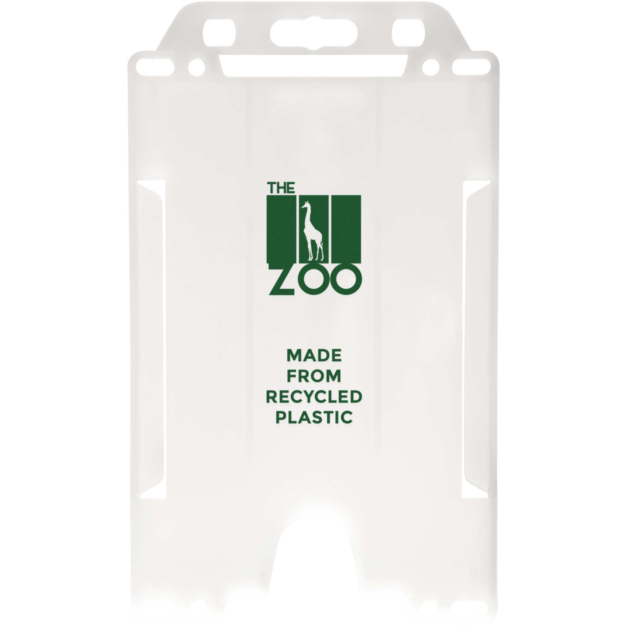 Portrait card holder made from recycled plastic. Ideal for exhibitions, workplaces, and networking events. Suitable for standard business card and credit card sized passes. Due to the nature of recycled plastic, colour shades may vary slightly, and there may be specks of colour. Made in the UK.