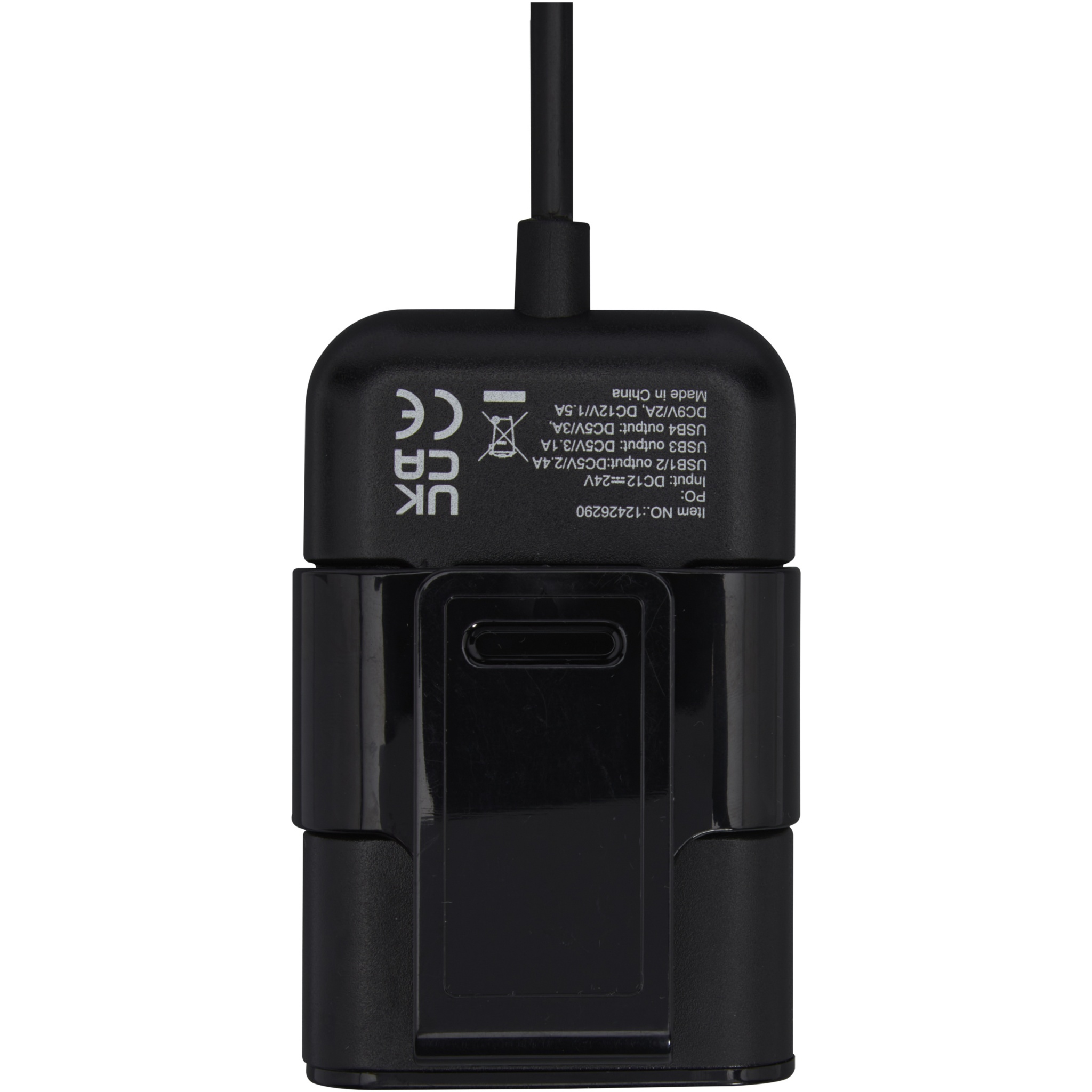 Designed for family & travel, this charger allows back and front seat passengers to simultaneously charge their electronic devices while on the road. Universal compatibility for 12/24V vehicles. Qualcomm Quick Charge Protocol 3.0. USB1/2 output: DC5V/2.4A, USB3 output: DC5V/3.1A, USB4 output: DC5V/3A, DC9V/2A, DC12V/1.5A. Cable length: 170 cm.