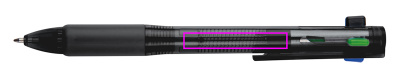 Plastic ballpen with 4 colored writing mines (blue, black, red, and green.) Your logo will be printed below the clip.