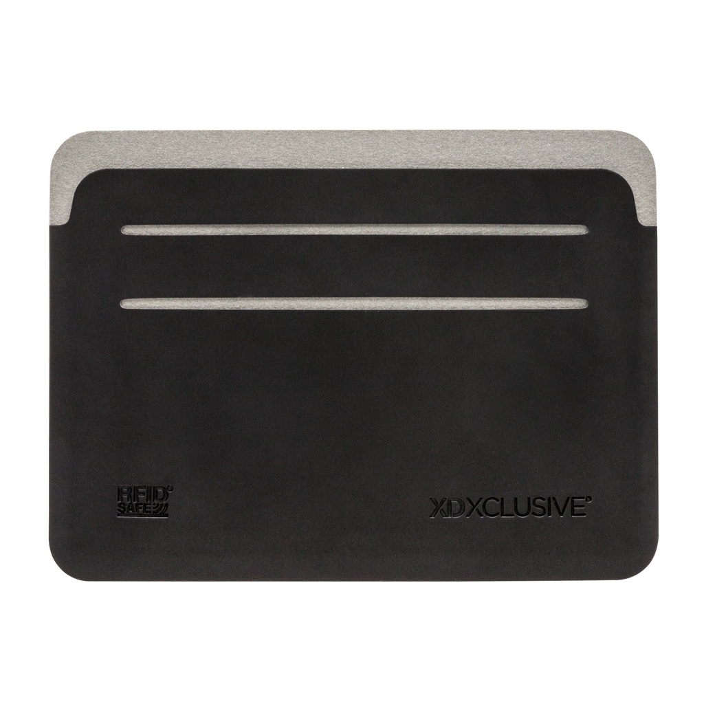 This ultra-thin, lightweight and secure RFID safe cardholder is a unique contemporary design. The RFID-blocking material protects against identity theft and electronic pickpocketing. 4 easy access card slots can hold up to 8 cards. Registered design®