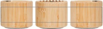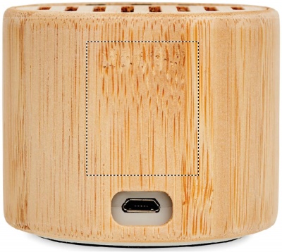 5.3 wireless speaker in ABS with bamboo casing and LED light indication. 1 Rechargeable Lithium 300 mAh battery included. Output data: 3W, 4 Ohm and 5V. Playing time approx.. 4h. Bamboo is a natural product, there may be slight variations in colour and size per item, which can affect the final decoration outcome.