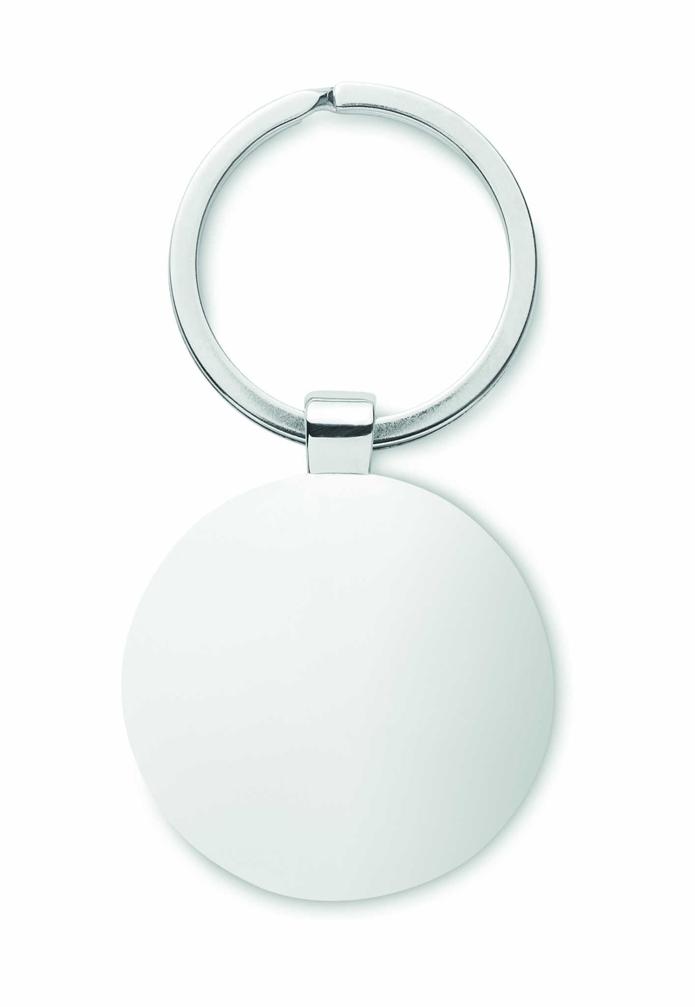 Round shaped zinc alloy key ring with bamboo front. Bamboo is a natural product, there may be slight variations in colour and size per item, which can affect the final decoration outcome.