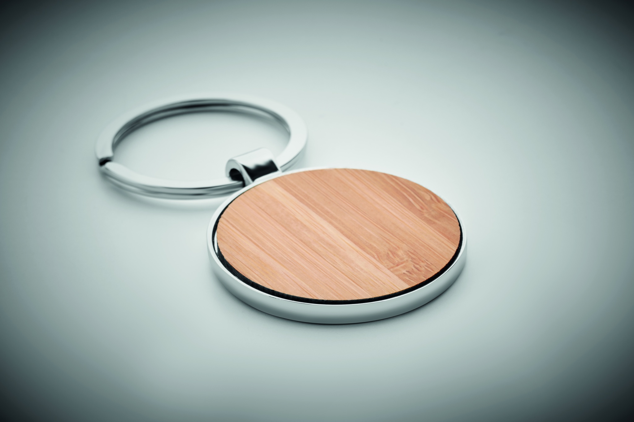 Logo trade promotional item photo of: Round key ring metal bamboo Dobele